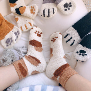 Cute cat paw coral fleece socks yv42726
