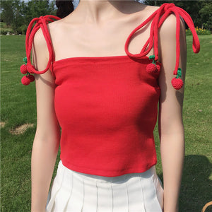 Cute cherry lace knit sling top yv42373