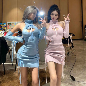 Lace Up Hollow Out Side Split Dress yv32121