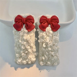 Lamb wool red bow hair clip yv31470
