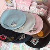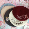 Color: blue house, wine red card, white playing card, beige sailboat, gray lamb, pink teapot, light brown biscuits, black rabbit, navy blue cherry, black moon, maroon cat, pink love heart, black paper crane , Black white horse, light pink stars, wine red angel, white black horse, gray fish