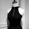 Japanese dark high neck zipper vest yv30169