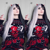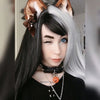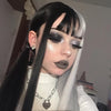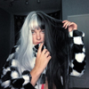 Tracks are very stretchy, the hair quality is smooth and soft, tangles as wigs often do. With all wigs , you gotta trim it a little so it suits your face shape, in my case I like a block fringe and I found styling it quite easy. It’s lovely and long and give off witchy vibes- Great if you’re going for an e-girl look or something a little emo, spooky or if you’re into goth.