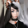 I really love this wig! It's very nice and soft and the bangs are cute and wispy and not too thick and blunt. I did not need to trim them, and they were already kinda styled. I bought this wig to match handmade ears I bought but unfortunately the colors were switched! I wish I had known in advance because the pics posted here can be mirrored and I wasn't sure, but the black is on the left side and I wish it was on the right side or we had an option to choose. Other than that, if I didn't get it to match ears, it's a very wonderful wig and cute look! I would buy this wig again if there was an option to have the colors switched to the opposite sides.