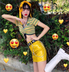 Review for PU bright yellow hip hop skirt yv42065